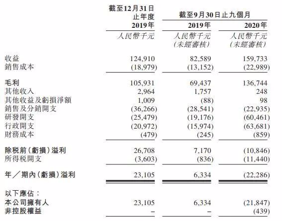 招股书显示,先瑞达于PTA球囊产品及DCB产品推出后开始确认收益。于2019年及2020年,先瑞达的销售收益分别为1.25亿元及1.94亿元;于2019年录得溢利2310.5万元,于2020年录得亏损4429.2万元。