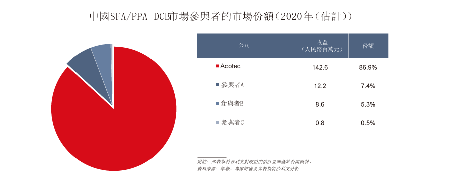 截至2021年2月1日,中国市场上仅有四款获国家药监局批准应用于治疗SFA及PPA病变的DCB产品。先瑞达以2020年收入计的市场份额约86.9%,为主导中国SFA/PPA DCB市场的市场领导者。