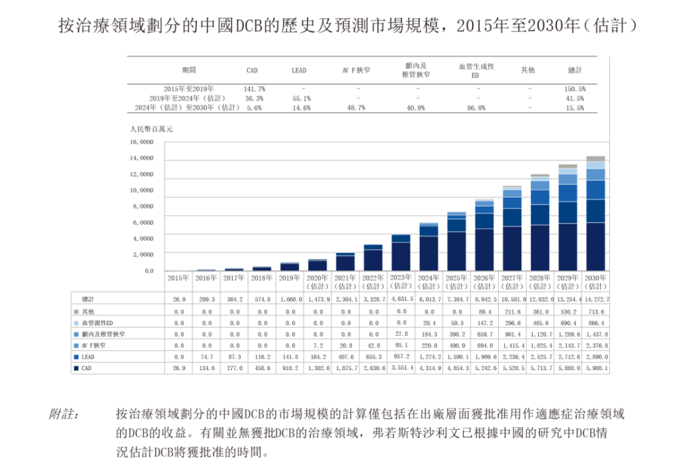 据招股书数据显示,在DCB首次获批在中国用于治疗CAD后,DCB的市场份额由2015年的人民币2690万元显著上升至2019年的人民币10亿元,复合年增长为150.5%,短短4年便成长为十亿级别的市场。