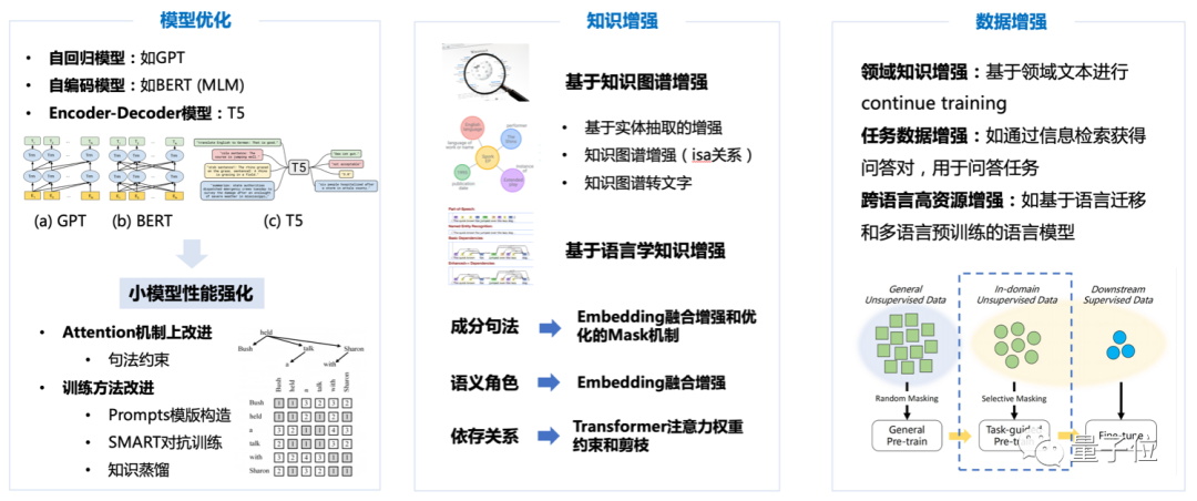 澜舟团队也有总结,从数据增强、知识蒸馏、迁移训练、训练优化等方面展开了一些探索,进一步提升语言模型的性能: