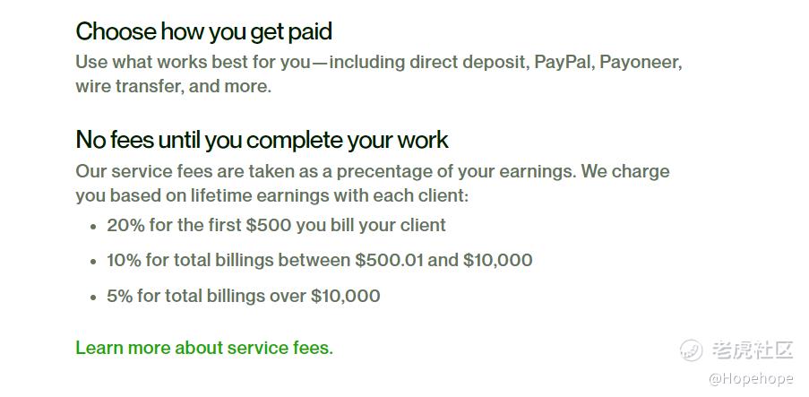 Fiverr's business model charges the buyer around 5.5% as service charge to match the buyer and seller. So what about Upwork? A quick check shows that buyer is being charged 3% processing fee whereas the freelancer is being charged as follows:-