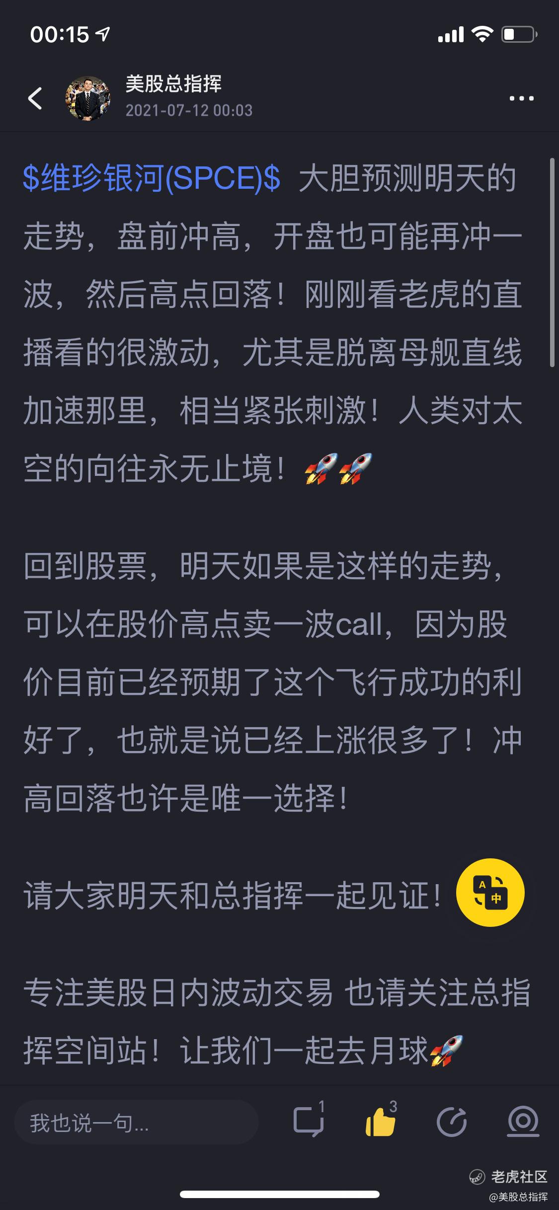 - 美股总指挥·2021-07-12如果盘中量能很大,我们也可以随时做多正股,具体操作明天会发到空间站,随时关注!1举报