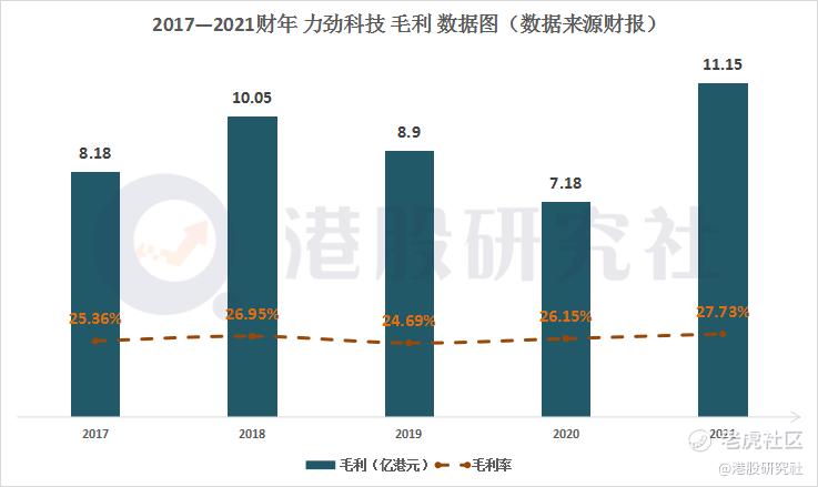 从盈利水平看,力劲科技的毛利率相对稳定,一般在24%至27%之间,本财年略高于此区间范围,财报显示,2021财年毛利达到11.15亿港元,毛利率达到27.73%。