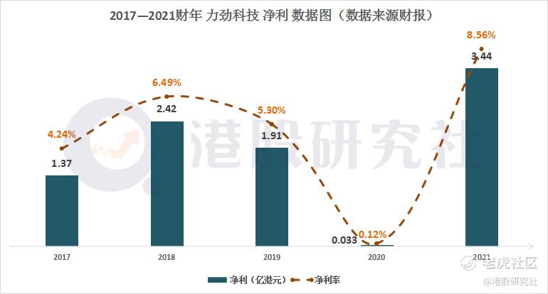 就基本面而言,2021财年力劲科技营收、净利实现同比增长,特别是在净利方面,相比2020财年大涨超百倍。