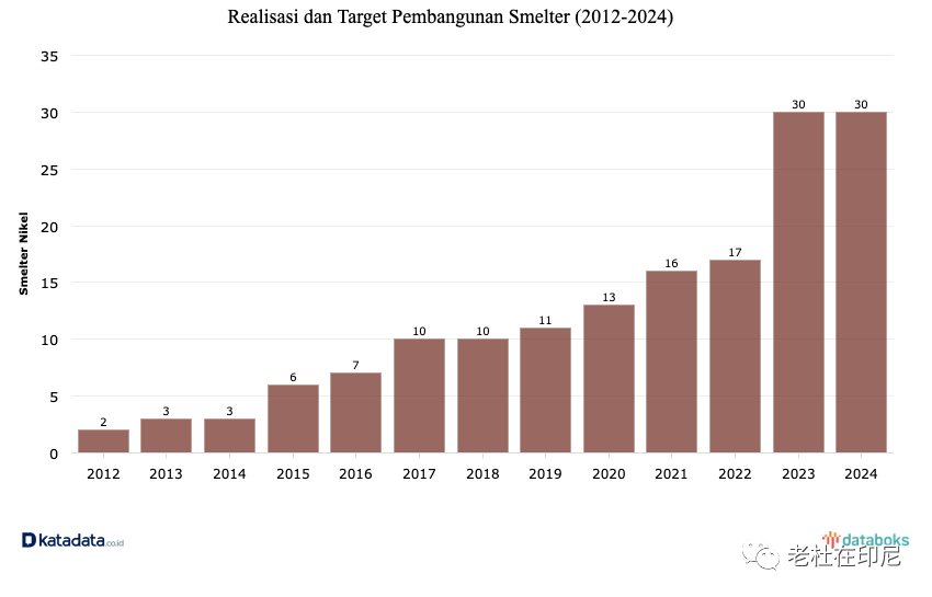 同时,根据能源矿产部的数据,到2024年将有多达53家冶炼厂在运营,其中30家是镍冶炼厂。详细情况是,已建成 13 座镍冶炼厂,还有 17 座仍在筹建中。