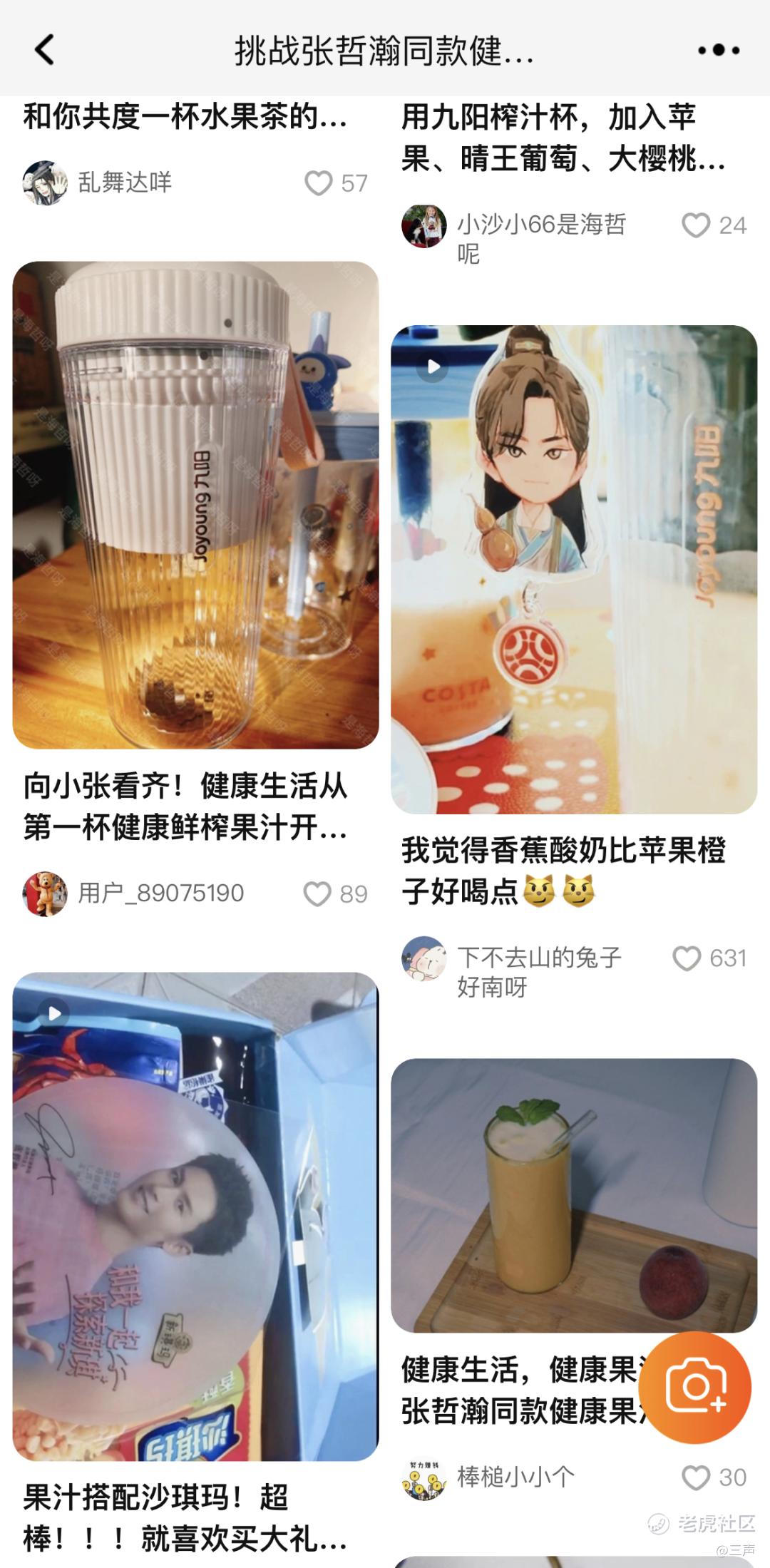 比如在参与#挑战张哲瀚同款健康果汁 活动时,大量用户分享的果汁制作内容中,就都出现了张哲瀚代言的同款榨汁机,并在内容下方添加了已购宝贝,对此商务代言品牌和此款商品进行了强力种草,引发了健康生活和张哲瀚代言榨汁机的潜意识联系,并影响其他用户进行“一键拔草”。