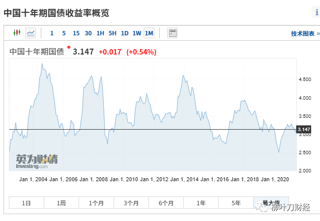 存1年,利息只有1.75%,100万,1年以后只有1.75万,5年的稍微高一些,都了2.75%的利率,而十年这里虽然没有,但可以看10年期国债的利率是3.147%: