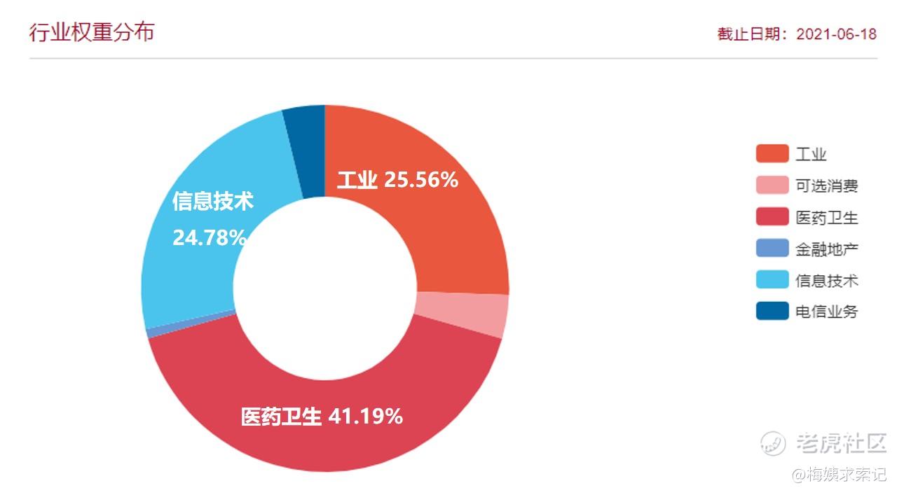 由其行业权重可以看出,医药卫生几乎占了半壁江山,占比41.19%;工业和信息技术又各占了四分之一。