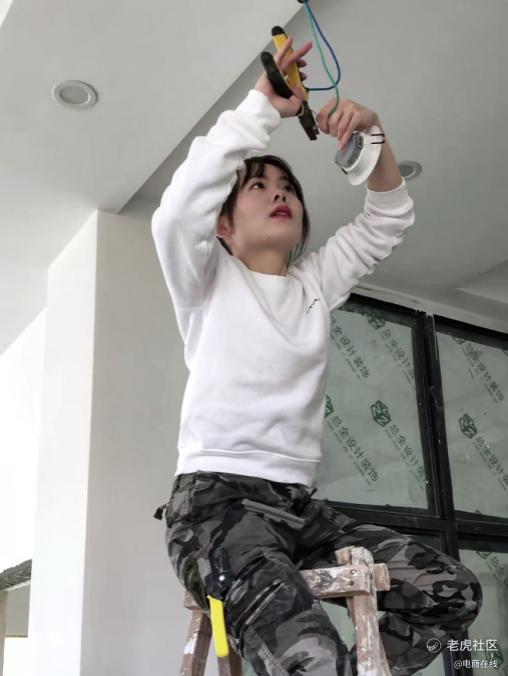 在大部分短视频中,她都以一种反差形象出现:学生头,一米五的个子,却穿着工装迷彩裤,背着工具包,整日穿梭在毛坯房里,三两下麻利地为房子安好弯弯绕绕的电线,然后站起身,对着镜头,跟粉丝分析布线原理、插座里预留多长的电线才合适。
