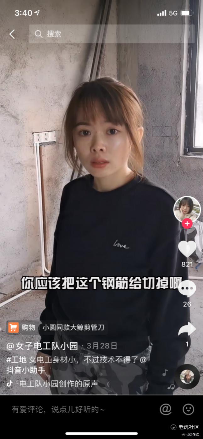 为了让自己更专业,陶媛跟着一个老师傅学习水电安装实操,花了一个月入门。在抖音上打造“女电工”的人设,陶媛做得很顺畅。起初,她并没有抱着卖货的目的拍视频,所以,除了拍摄日常安装水电的视频,她偶尔也会在抖音上卖卖萌,讲讲搞怪段子。