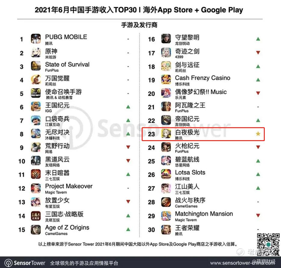 永航科技以其研发的《QQ炫舞》在早年间闻名于国内。在今年6月17日,永航科技旗下巡回犬工作室研发的二次元战棋游戏《白夜极光》在海外上线,上线3天后在日本市场下载量超200万,据Sensor Tower所示其在6月份收入超1700万美元,约合人民币1.1亿元,跻身中国出海手游畅销榜的第23名。