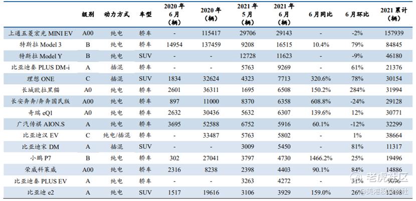 根据中国汽车动力电池产业创新联盟数据,6月,动力电池装车量为11.1GWh,同比增长136.2%,环比增长13.8%,1-6月动力电池装车量累计为52.5GWh,同比增长200.3%。上半年新能源车销量为120.6万辆,对应单车装机量为43.5kWh,2020年为47kWh,单车装机量有所下降,侧面显示低端车需求的火爆。