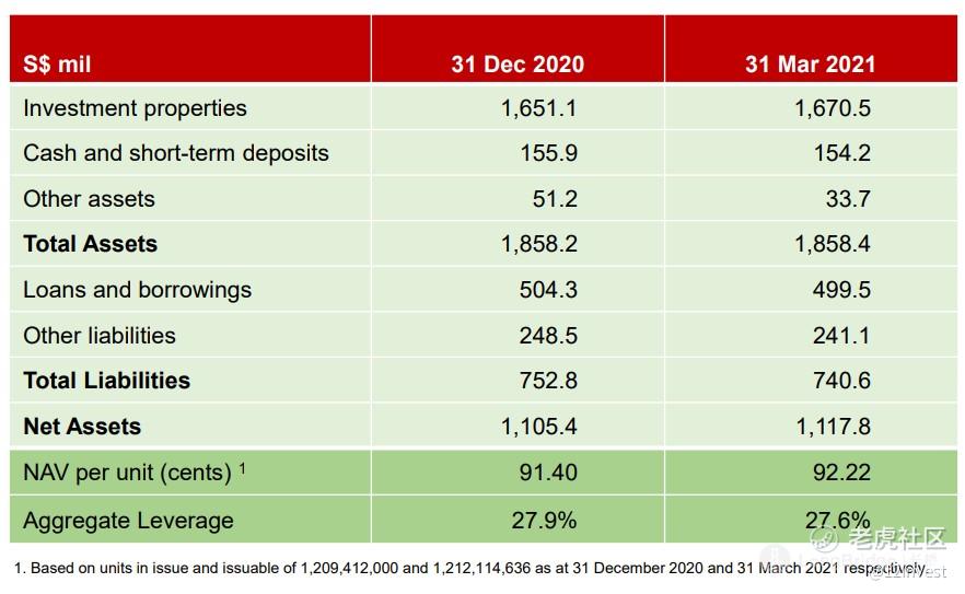 那么以 REIT 来说,公司最重要的杠杆比例我们刚才已经提到了。短期内,公司手头上也有 1.6 亿新币的现金来支撑,因此相信运营是没有问题的。除非公司有打算向保荐人或第三方收购产业需要额外的举债融资或者发行新股之外,基本上公司的财务都非常的稳健。