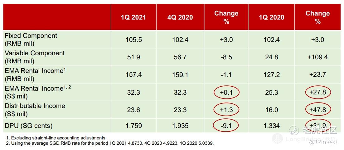 以公司在 2021 财政年第一季度的表现来看,基本上所有的数据对比 2020 年第一季度以及第四季度都有所增长,当然对比 2020 年第一季度在中国面临疫情的影响之下,公司的增幅是更为巨大的。不过,就算是对比 2020 年第四季度也好,公司也只看到了每股股息派发的下滑,下滑幅度为 9.1%,整体上的影响不大。