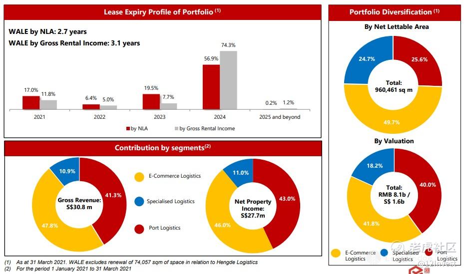 公司在近期内也在 Hengde Logistics 中获得了重要的租凭更新合约,因此目前根据 NLA 以及 GRI 的 WALE 分别为 2.7 年以及 3.1 年。但普遍上公司的租金都集中在 2024 年,因此短期来看是没有该方面的风险的。