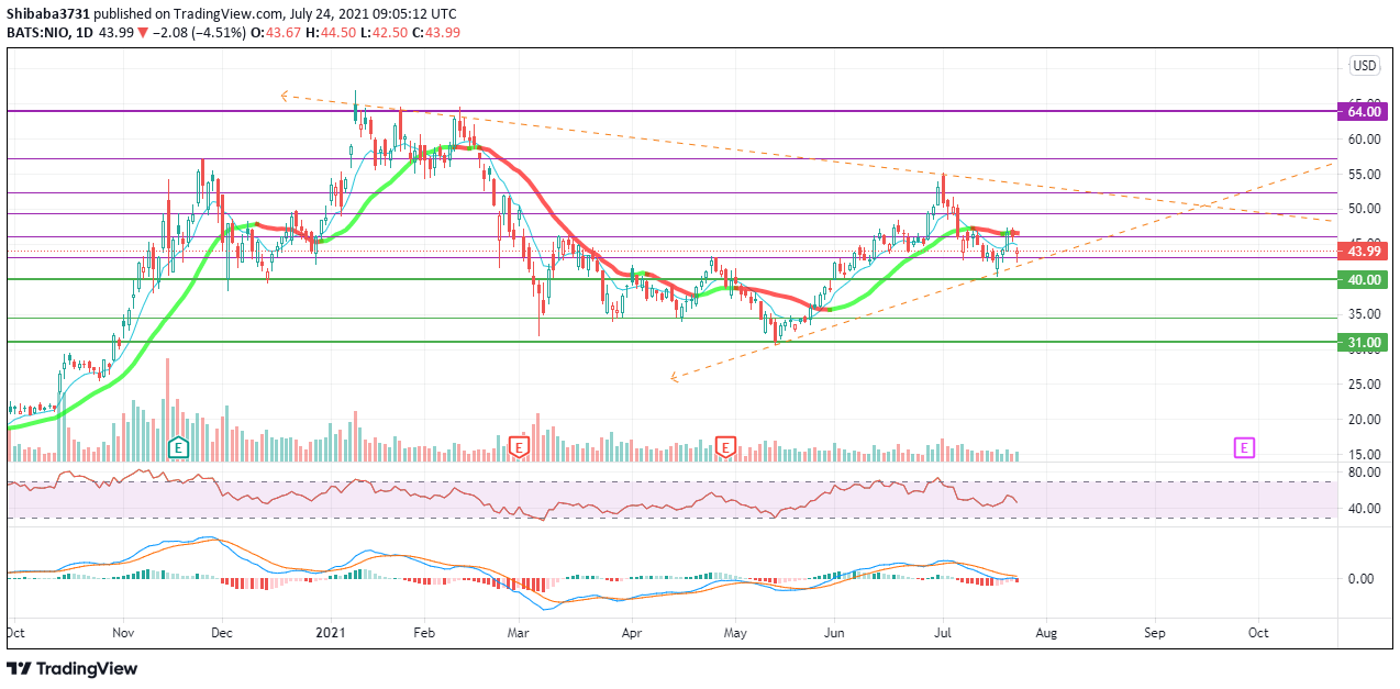 As a trend trader, I will avoid $NIO because I don't see any trend. It is likely $NIO will continue to trade sideways until investors are assured that Chinese stocks are not being targeted by China or US. Fundamentally, $NIO is on the right track with every country pushing towards going green and EV is the way to go. Furthermore, $NIO already has a strong foothold in one of the biggest market in the world.