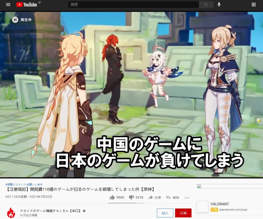 日本知名Youtuber“NAGAIDO”更是在视频中大声疾呼,日本游戏要输给中国游戏了。他将《原神》进入日本比喻成“黑船叩关”,认为日本厂商必须做出改变,中国游戏非常优秀。