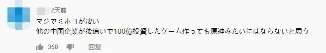 一名日本玩家认为,就算给其他企业投资100亿日元(约5.8亿人民币),也未必能做出像原神一样的游戏,给予了极高的评价。