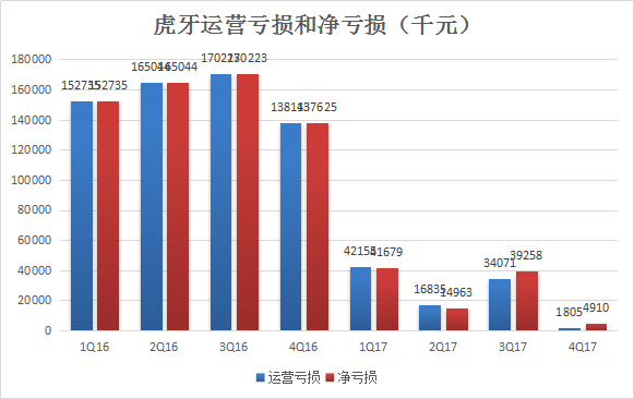 2017年第四季度,虎牙净亏损491万元,净亏损额大幅度下降。剔除A系列优先股赎回的影响,2017年第四季度虎牙实现盈利497.8万元。