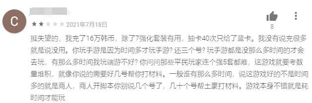 在Tap Tap上,也有玩家直言《奥丁》需要“挂机刷刷刷,适合工作室(多开养小号)的游戏,普通玩家进去体验不会很好”。
