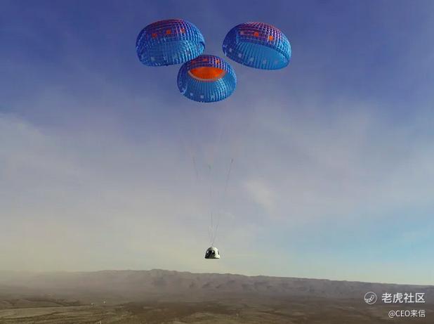 经过13分钟的起飞和降落后,贝索斯他们的飞船最终会通过自由落体的方式降落,当然会有降落伞进行缓冲。