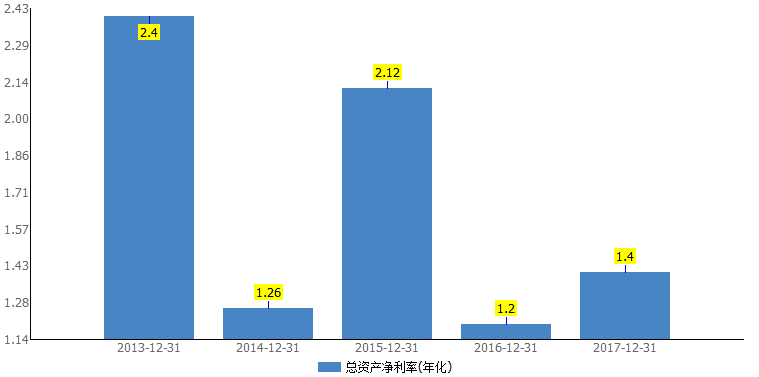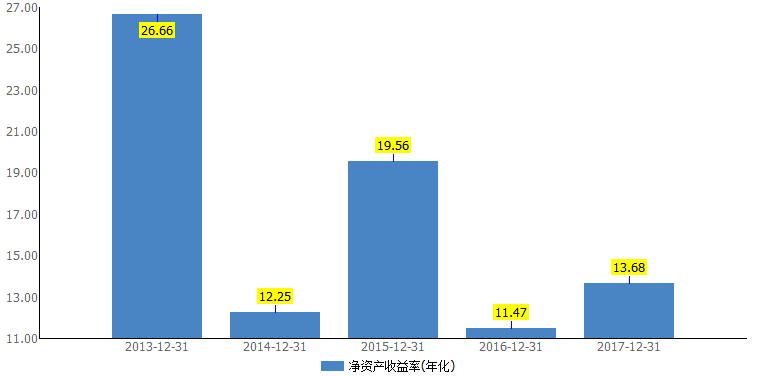 过去五年,公司的净资产收益率最低为12.25%,最高为26.66%,其2017财年的净资产收益率为13.68%。