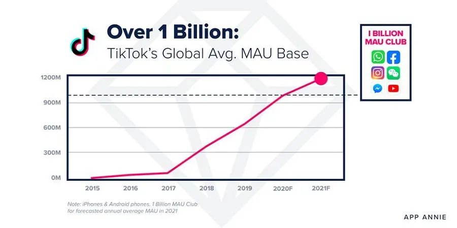 到2021年6月底,抖音日活用户数超过6亿,而其国际版本TikTok的月活用户数达到了6.89亿(Source:CNBC),两者相加使得其成为继微信之后第二个月活用户数超过10亿的中国APP。
