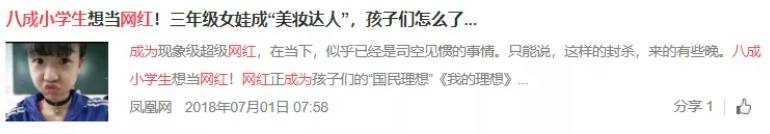 前一段时间的调查,有八成小学生都想成为网红,甚至3年级女孩就成为了抖音美妆达人。。