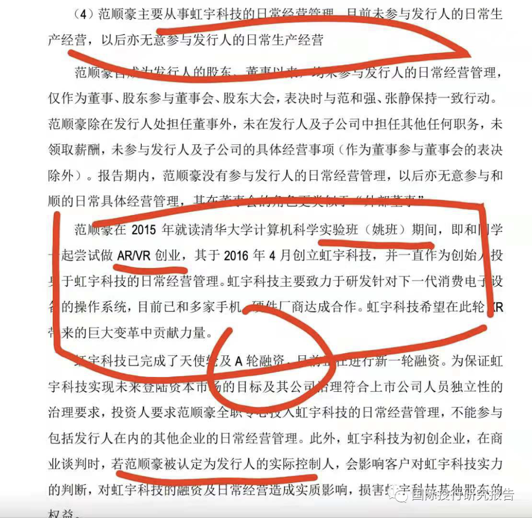 虹宇科技控股股东、创始人范顺豪毕业于清华大学“清华学堂计算机科学实验班”(姚班),在大学读书期间开始自主创业,设立虹宇科技,创业主攻方向为虚拟现实技术软件开发,与其所学专业相匹配。张静系发行人实际控制人之一,