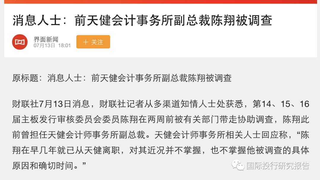 会所是天健所:陈翔刚被带走