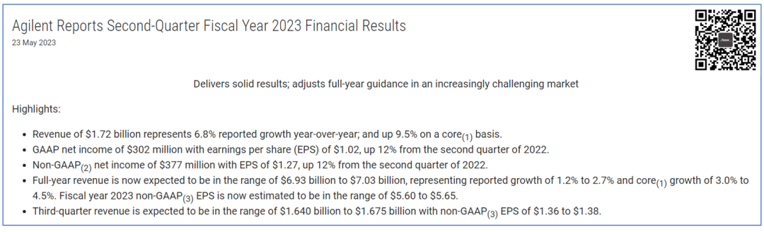 2023年5月23日,安捷伦发布了2023财年Q2的财报。