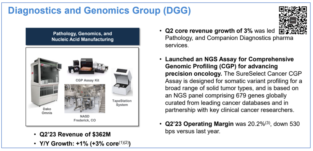 DGG:Diagnostics and Genomics Group,包括诊断和基因检测业务。