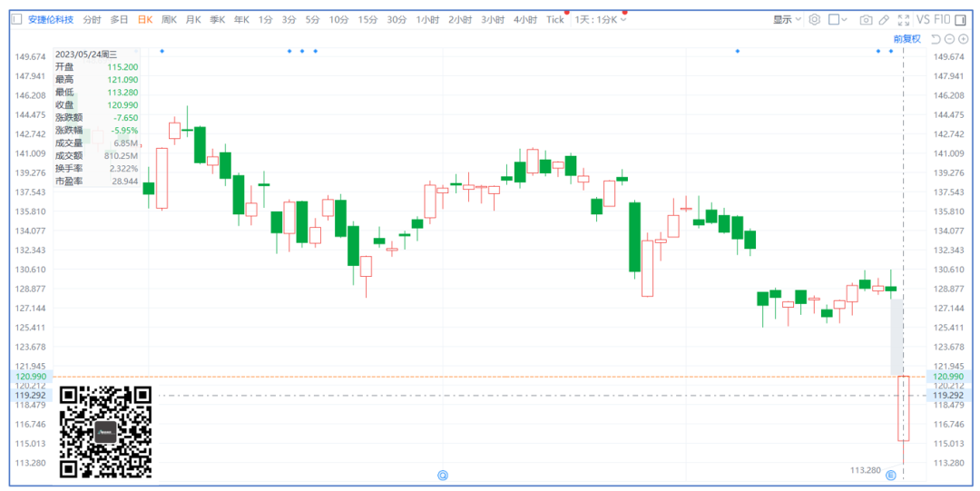 股价直接从128元附近,跌到最低113元附近,跌幅一度超过11%。