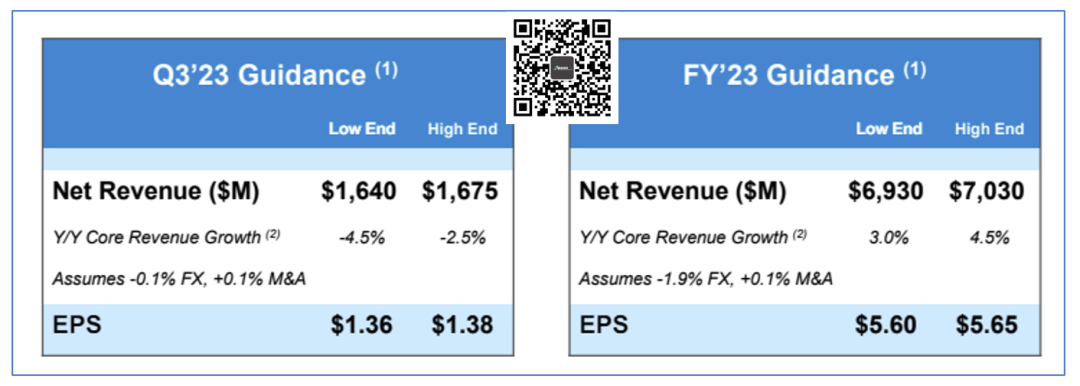 本次,安捷伦将2023Q3的预期调整为营收16.4-16.7亿美元之间,同比增长-4.5%。