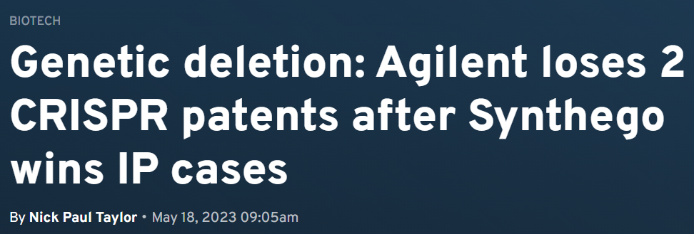 2023年5月18日,安捷伦输掉了与Synthego的专利纠纷。