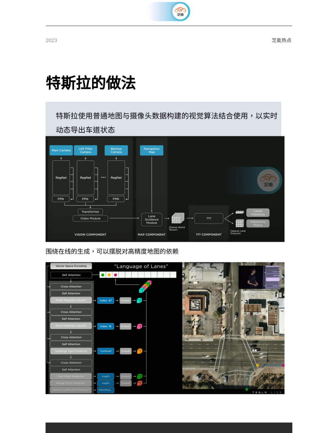 特斯拉还能把不同类型的数据翻译成同一种语言,让他们在同一个“语义空间”中对话,然后用Tranfomer 模型 让他们相互学习,获得更丰富的信息。这里本质上也是建立了高精度地图,但不同于 之前的地图,这是一种局部、实时构建高精度地图,这种方式更有效率,可以降低制作成本、提高使用便利性和能够实时更新。