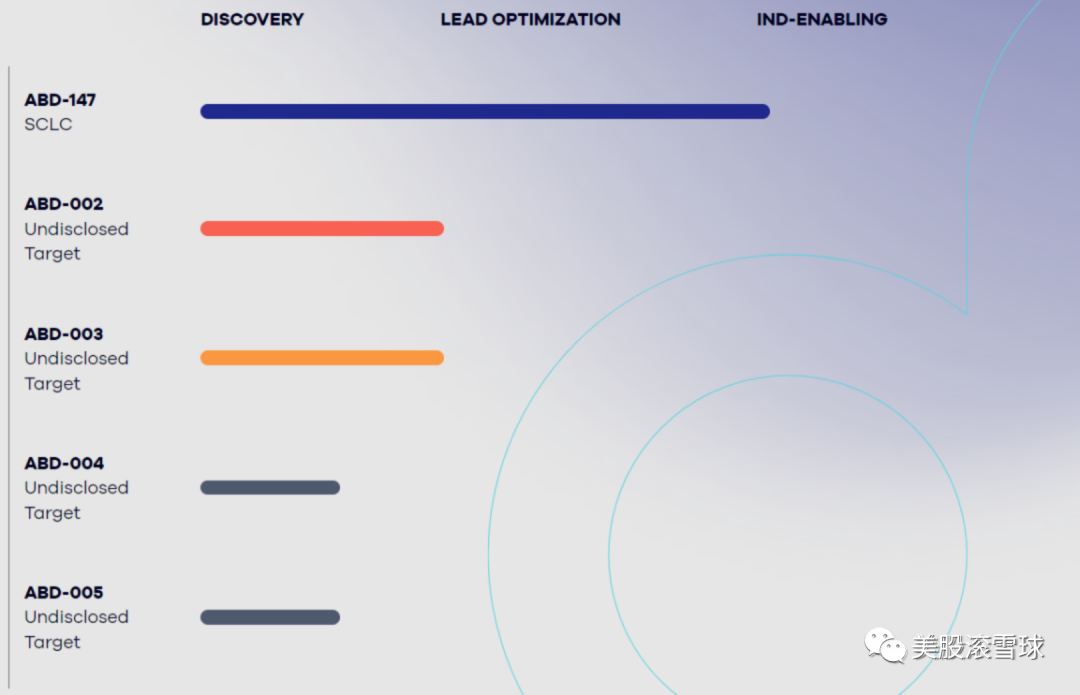 Abdera目前有5个在研管线,其中最为领先的是靶向δ样配体3(DLL3),这是Notch通路中的一种蛋白质,在小细胞肺癌(SCLC)和其他实体瘤中上调并特异表达,在非恶性细胞上很少表达。目前DLL3项目正在推进临床前研究,预计将于2024年递交IND申请。
