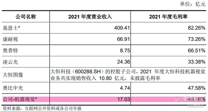 2021年,基恩士、康耐视、奥普特的毛利率分别高达82.26%、73.26%和66.51%。同期,海康机器人的机器视觉业务毛利率为46.16%,并不算亮眼。