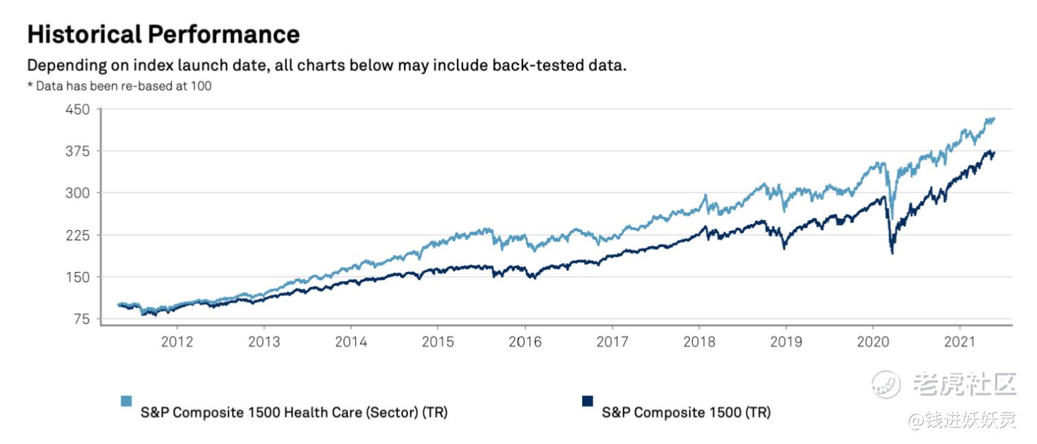 标普综合1500指数中医疗健康板块在2011-2021这10年的年化平均收益是15.54%;而同时期的标普综合1500指数的年化平均收益是13.55%。和其他板块相比,IT和医疗健康板块是平均收益最高的两个板块。