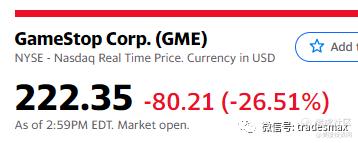 这就导致了GME开盘后一路暴跌到 26%。完全吻合我们昨天大数据的预测。
