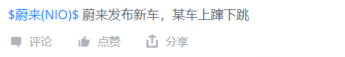 此外还有虎友发现,蔚来在宣布发布新车后,某车上蹿下跳。但具体某车是哪车,这位虎友又没有明说[抠鼻]