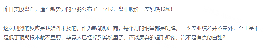 小鹏在公布季报之后股价大跌,虎友表示毫不意外,并使用了很有味道的形容[DOGE]: