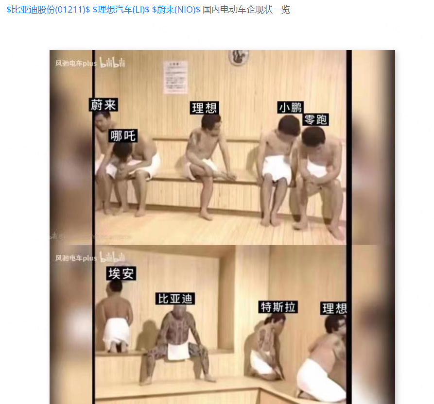 蔚小理及哪吒领跑等菜鸡互啄,比亚迪不动如钟安如山。 $蔚来(NIO)$ $理想汽车(LI)$ $小鹏汽车(XPEV)$