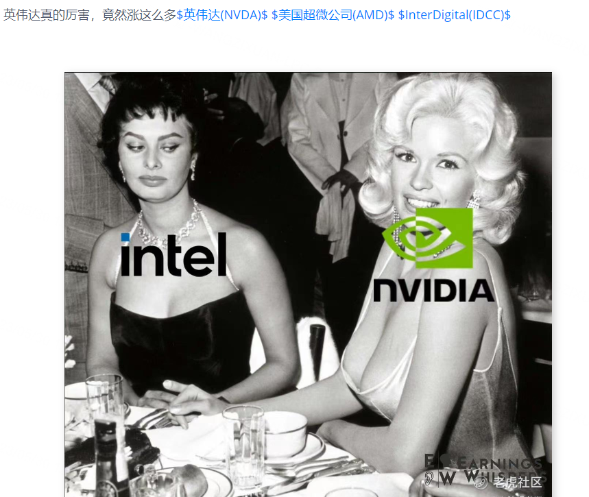 不知道英特尔是如何看待 $英伟达(NVDA)$ 在一晚上就涨出两个自己的,是否如同下图呢[邪恶]
