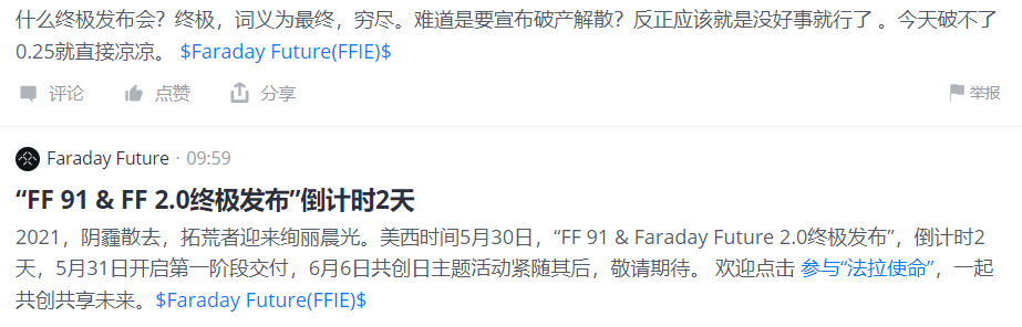 说到电动车,不说社区人气王 $Faraday Future(FFIE)$ 有点不合适了。