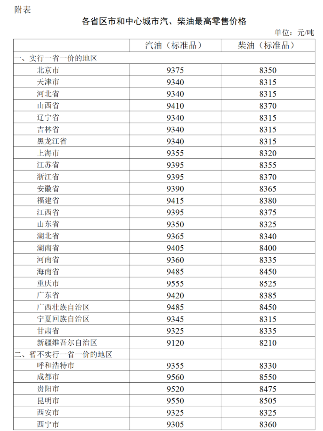 调整后,各省(区、市)和中心城市汽、柴油最高零售价格见下图。
