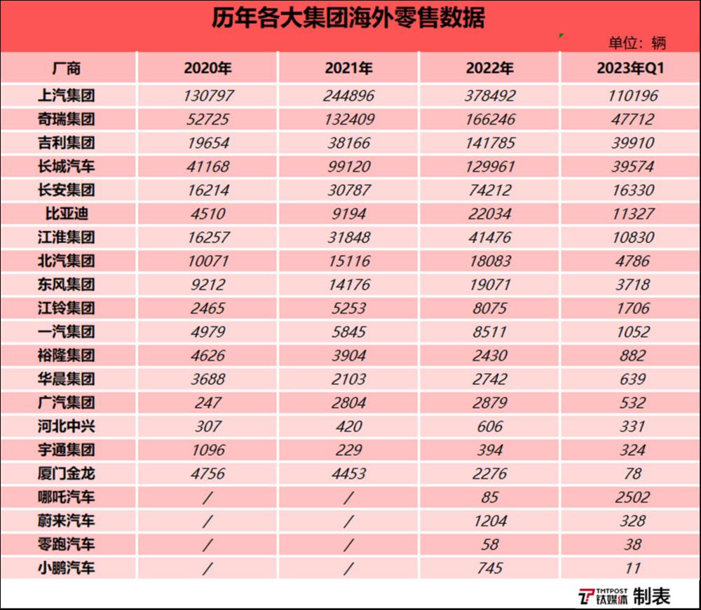 除此之外,国内的其他汽车品牌也都在积极布局海外市场。