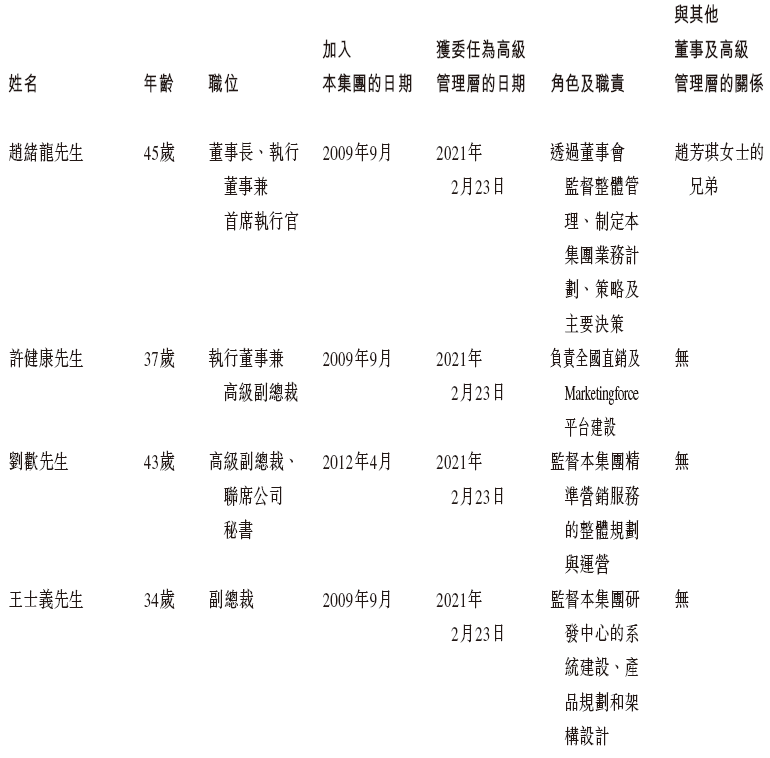 高管包括董事长兼首席执行官赵绪龙先生,高级副总裁许健康先生这2名执行董事,其他包括高级副总裁、联席公司秘书刘欢先生,副总裁王士义先生,首席技术官徐有福先生,首席财务官马进先生。