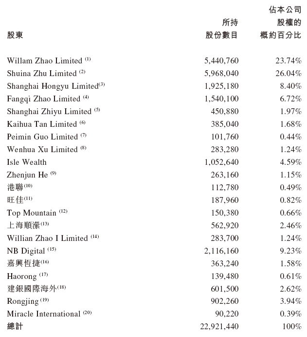 赵芳琪女士(赵先生的姐妹),通过Fangqi Zhao Limited持股6.72%;