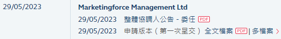 2023年5月29日,来自上海的迈富时管理有限公司 Marketingforce Management Ltd(以下简称“迈富时管理”)在港交所递交招股书,拟在香港主板IPO上市。这是继其于2022年11月21日递表失效之后的再一次申请。